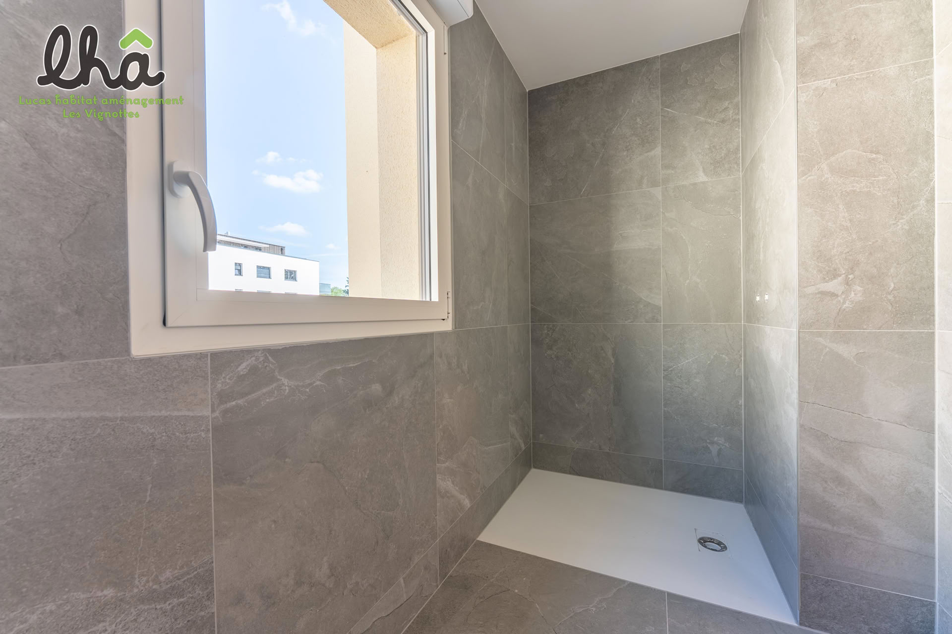 Faïence toute hauteur sur l’ensemble des murs des salles de bains